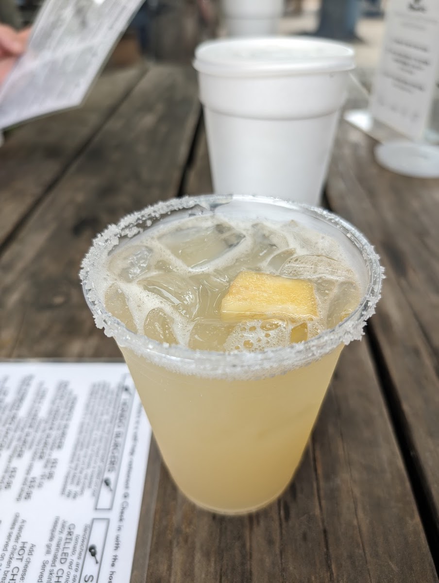 This was some of the best food we've had in a long time. The burger was fresh and tasted like it had been grilled outside, the hot dog was great, and the quesadilla was fresh. The chili was hands down the best item we had. There were no beans! The popsicle margarita was surprisingly good. Ended up ordering another! The salsa, guac, and nachos were good. Honestly, everything was amazing. Can't say enough about this place! Sat outside in the covered seating during a rain storm and it was dry and peaceful. Will be back again.